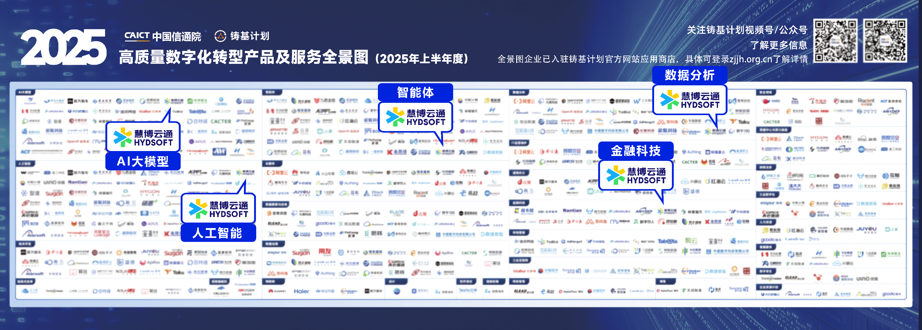 2025年9月16日,中国信息通信研究院(以下简称“信通院”)正式发布《高质量数字化转型产品及服务全景图(2025上半年度)》,以业界权威角度呈现国内在数字化转型及服务领域具有出色市场表现与商业价值的企业典型案例。“慧博云通企业级AI智能体解决方案”、“慧博云通贷后风险预警系统”和“数字化工作台”三项产品及解决方案成功上榜《全景图》,在人工智能、AI大模型、智能体、金融科技、大数据等领域展示公司的专业技术与创新实践成果,标志着公司在推动产业数智化的综合能力再获权威认可。